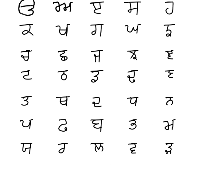 ALPHABET (GURMUKHI) Punjabi alphabet is known as Gurmukhi. Since its characters were used for writing and transcribing the biography and hymns of Guru Nanak, it was given this name by the second Sikh Guru, Guru An gad Dev. It is a misnomer to call the Guru as the inventor of its characters, because before the advent of Guru Nanak, their usage had been prevalent according to in a tablet found at A thur in Ludhiana district. Even Guru Nanak himself based one of his poems entitled \’patti\’ on its characters. This Alphabet is also called \’Paint is Akhri\’ because it contains thirty-five letters.